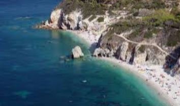 La Spiaggia di Sansone a Portoferraio, il mare è di un profondo blu e la sabbia è chiara ,in questa piccola spiaggia incastonata tra l'acqua cristallina e la scogliera bianca. Perfetta per fare snorkeling.
